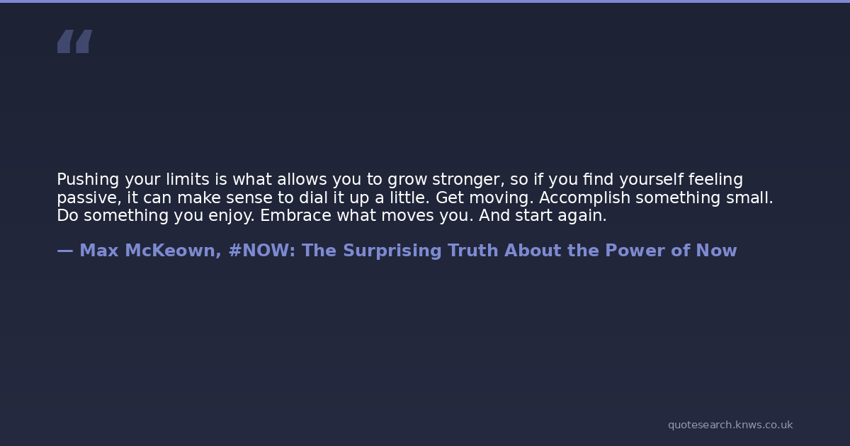 Pushing your limits is what allows you to grow stronger, so if you find yourself feeling passive, it can make sense to dial it up a little. Get moving. Accomplish something small. Do something you enjoy. Embrace what moves you. And start again.