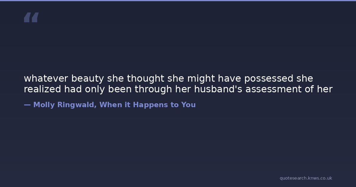 whatever beauty she thought she might have possessed she realized had only been through her husband's assessment of her