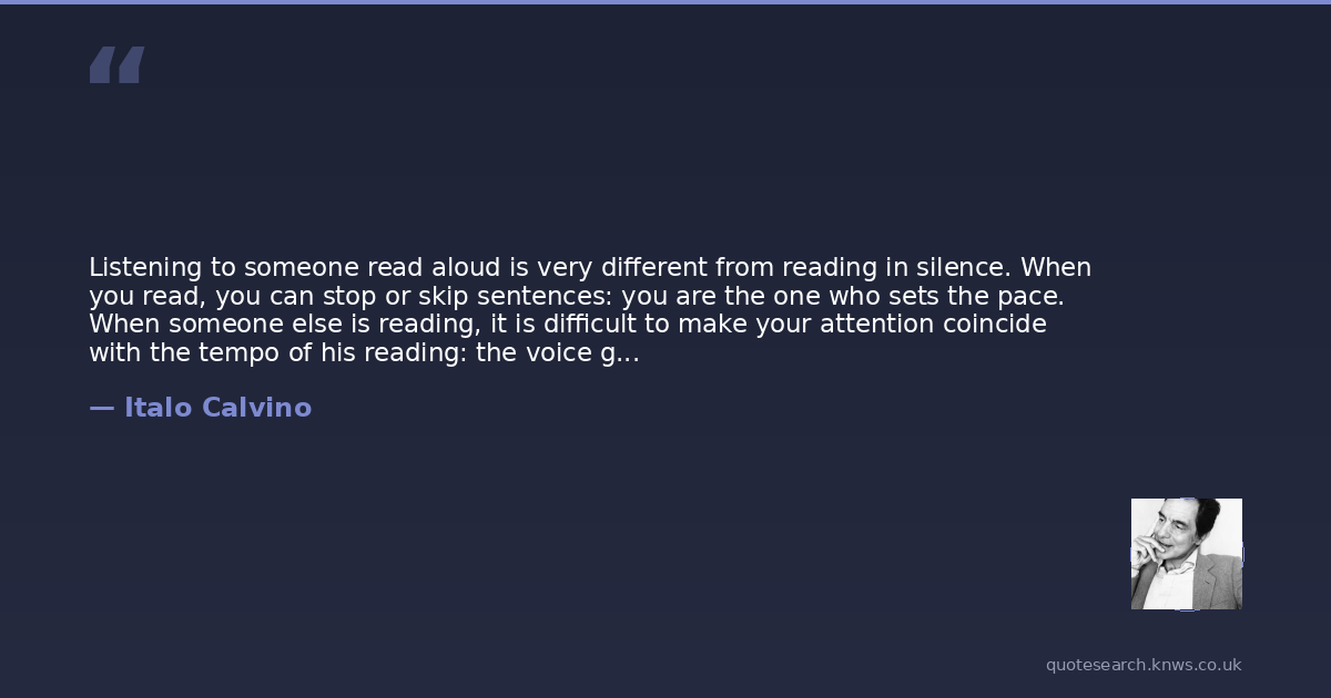 Listening to someone read aloud is very different from reading in silence. When you read, you can stop or skip sentences: you are the one who sets the pace. When someone else is reading, it is difficult to make your attention coincide with the tempo of his reading: the voice goes either too fast or too slow.And then, listening to someone who is translating from another language involves a fluctuation, a hesitation over the words, a margin of indecision, something vague, tentative. The text, when you are the reader, is something that is there, against which you are forced to clash; when someone translates it aloud to you, it is something that is and is not there, that you cannot manage to touch.