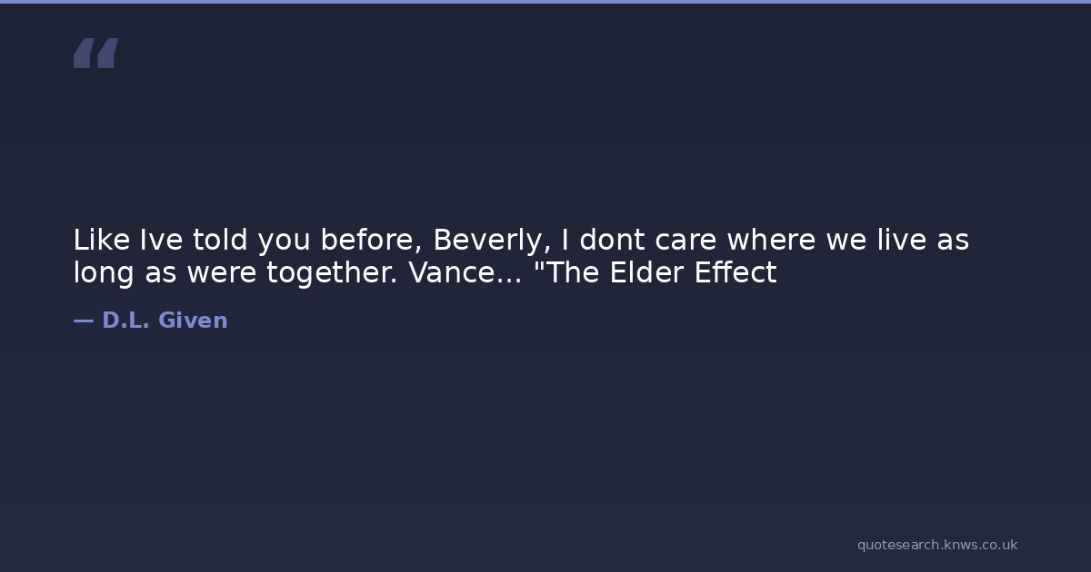 Like Ive told you before, Beverly, I dont care where we live as long as were together. Vance... "The Elder Effect