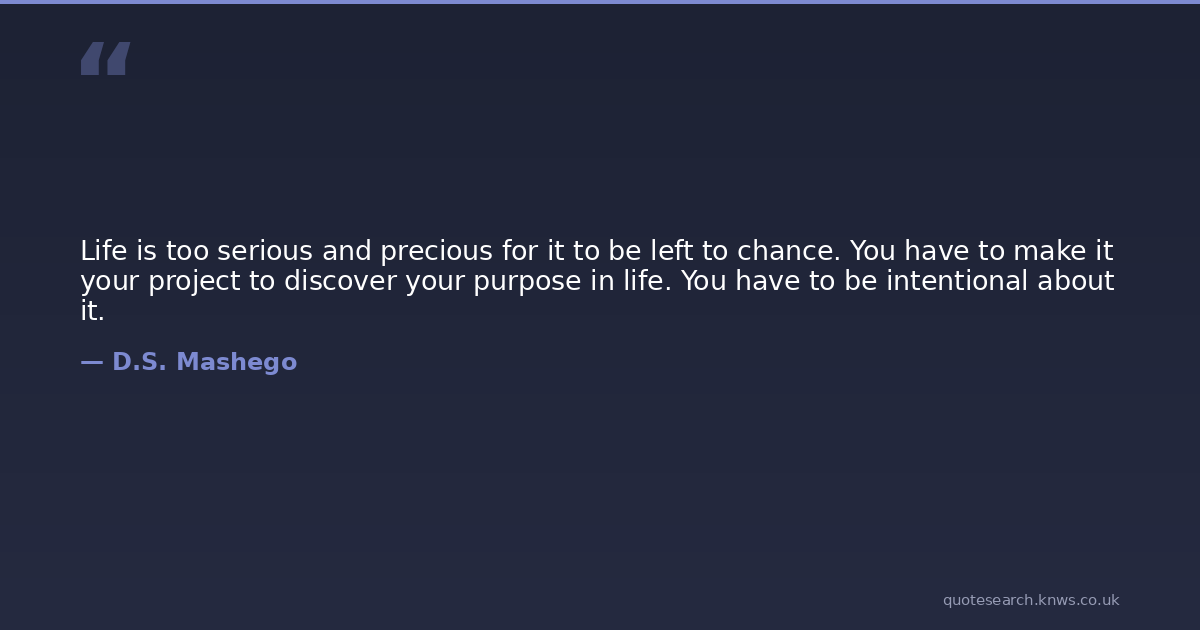 Life is too serious and precious for it to be left to chance. You have to make it your project to discover your purpose in life. You have to be intentional about it.