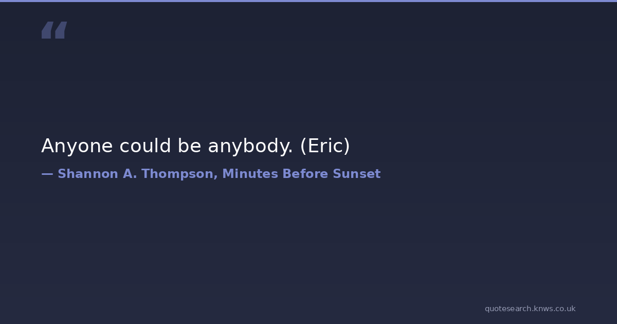 Anyone could be anybody. (Eric) fiction identity paranoia paranormal-romance supernatural trust young-adult Download Image Share on X Share on Facebook Copy Link