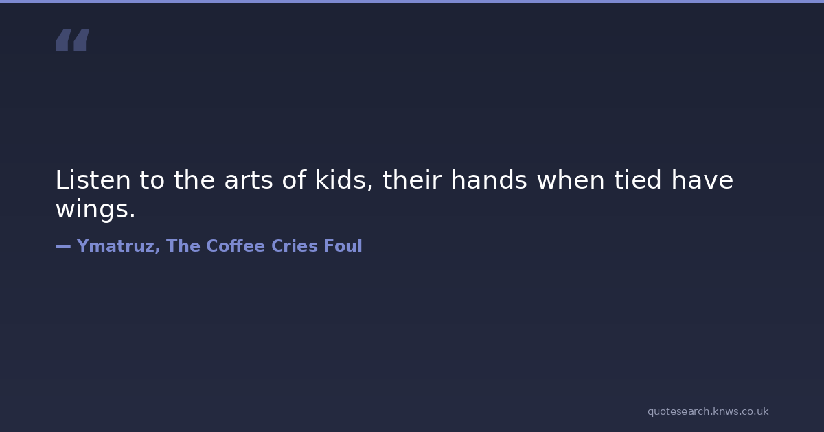 Listen to the arts of kids, their hands when tied have wings.