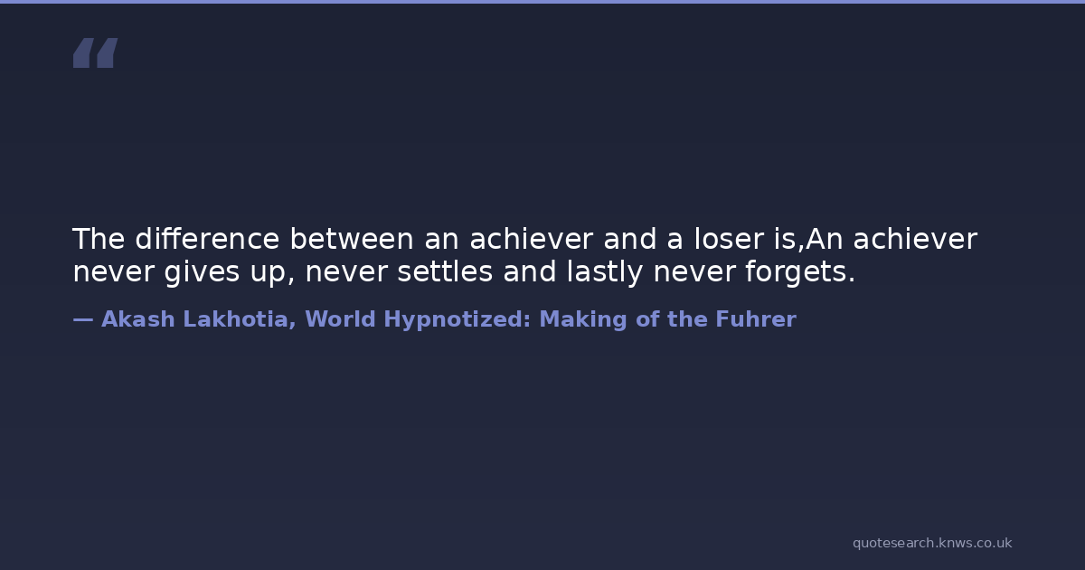 The difference between an achiever and a loser is,An achiever never gives up, never settles and lastly never forgets.