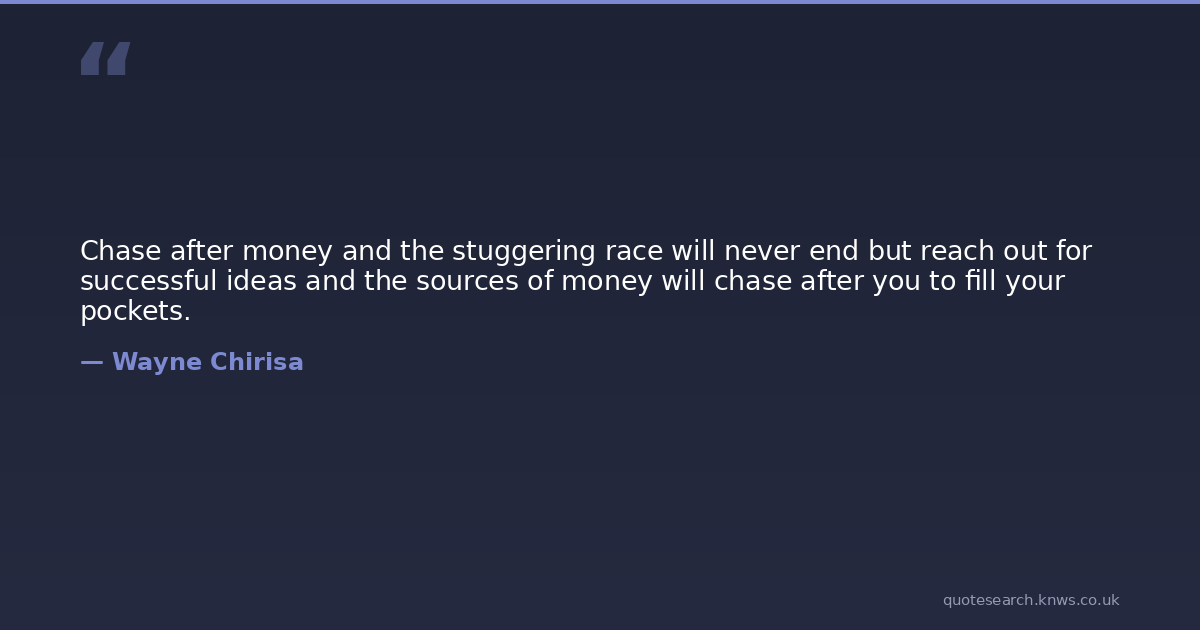 Chase after money and the stuggering race will never end but reach out for successful ideas and the sources of money will chase after you to fill your pockets.