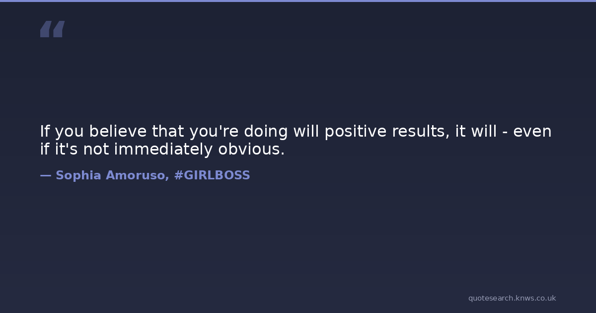 If you believe that you're doing will positive results, it will - even if it's not immediately obvious.
