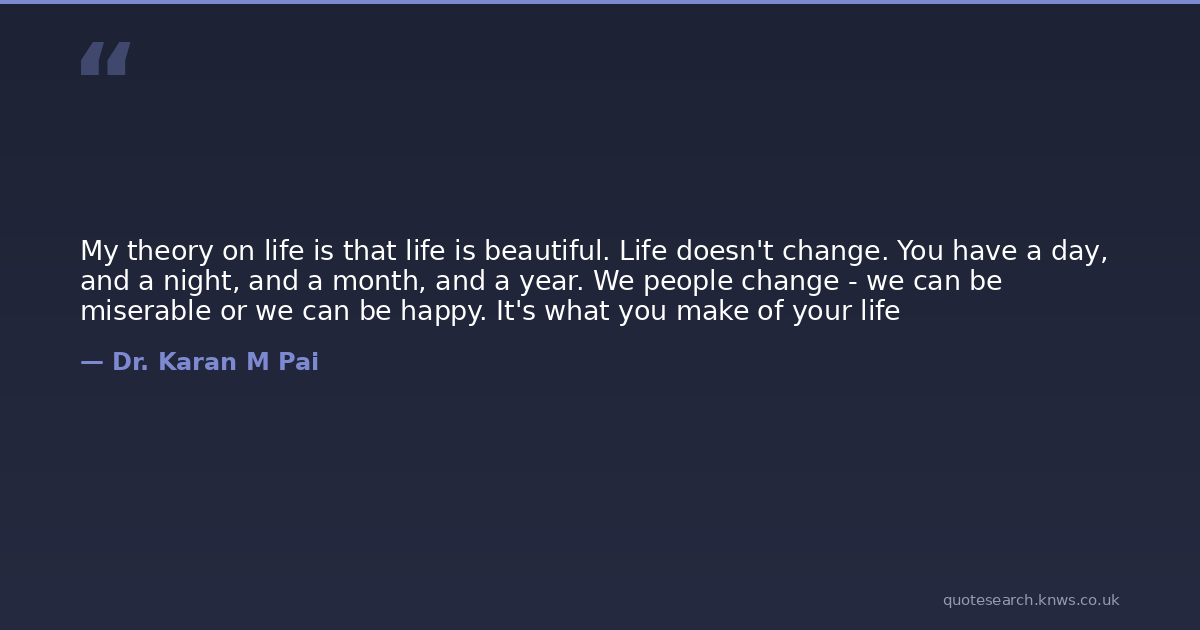 My theory on life is that life is beautiful. Life doesn't change. You have a day, and a night, and a month, and a year. We people change - we can be miserable or we can be happy. It's what you make of your life