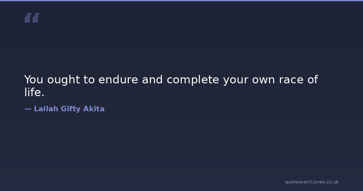 You ought to endure and complete your own race of life. college confidence determination determined-spirit dont-give-up educational-philosophy endurance game inspiration inspiring lailah-gifty-akita lessons-learnt life life-and-living never-quit patient perseverance persistence purpose race school self-motivation success university wise-words your-life Download Image Share on X Share on Facebook Copy Link