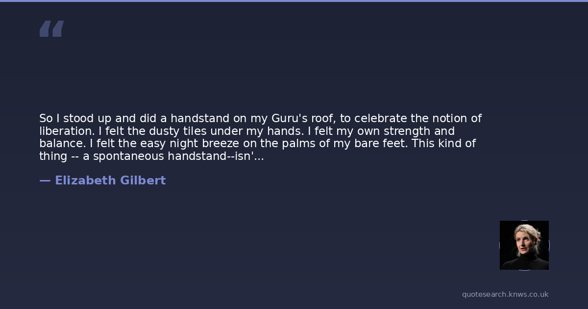 So I stood up and did a handstand on my Guru's roof, to celebrate the notion of liberation. I felt the dusty tiles under my hands. I felt my own strength and balance. I felt the easy night breeze on the palms of my bare feet. This kind of thing -- a spontaneous handstand--isn't something a disembodied cool blue soul can do, but a human being can do it. We have hands; we can stand on them if we want to. That's our privilege. That's the joy of a mortal body. And that's why God needs us. Because God loves to feel things through our hands.
