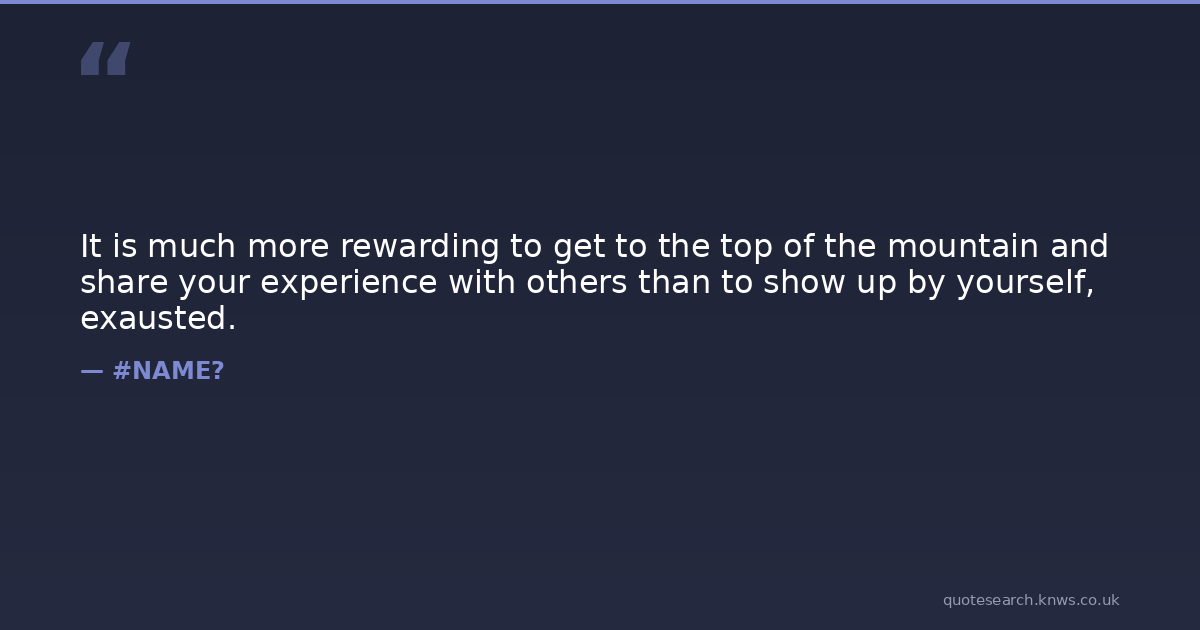 It is much more rewarding to get to the top of the mountain and share your experience with others than to show up by yourself, exausted.