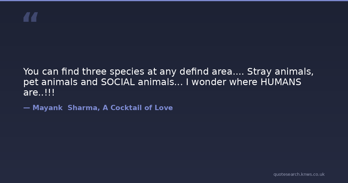 You can find three species at any defind area.... Stray animals, pet animals and SOCIAL animals... I wonder where HUMANS are..!!!