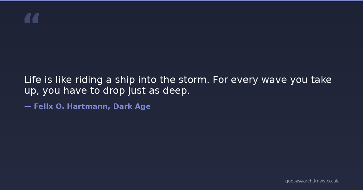 Life is like riding a ship into the storm. For every wave you take up, you have to drop just as deep.