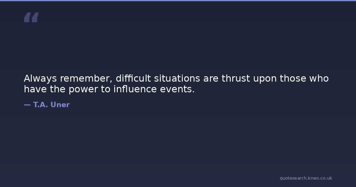 Always remember, difficult situations are thrust upon those who have the power to influence events.