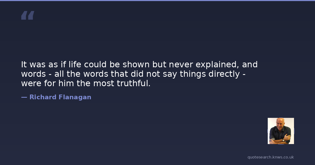 It was as if life could be shown but never explained, and words - all the words that did not say things directly - were for him the most truthful.