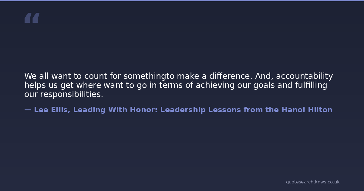 We all want to count for somethingto make a difference. And, accountability helps us get where want to go in terms of achieving our goals and fulfilling our responsibilities.