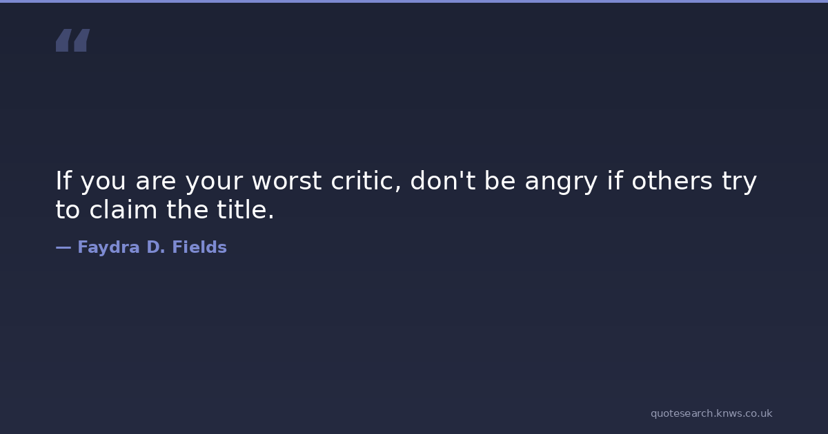 If you are your worst critic, don't be angry if others try to claim the title. food-for-thought Download Image Share on X Share on Facebook Copy Link