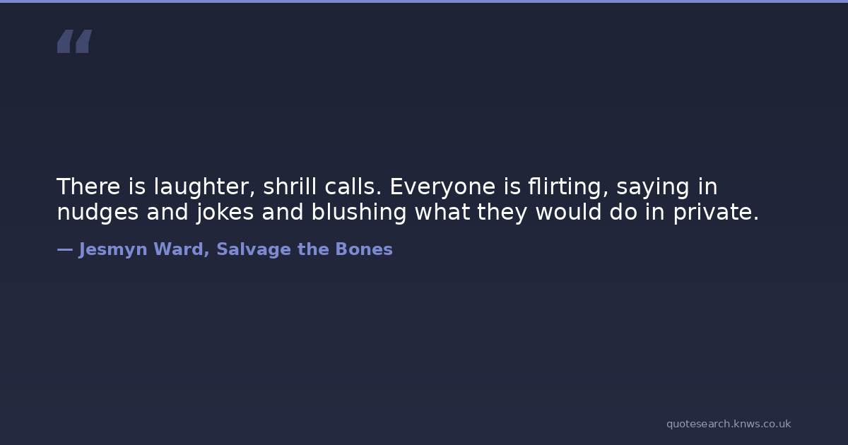 There is laughter, shrill calls. Everyone is flirting, saying in nudges and jokes and blushing what they would do in private.