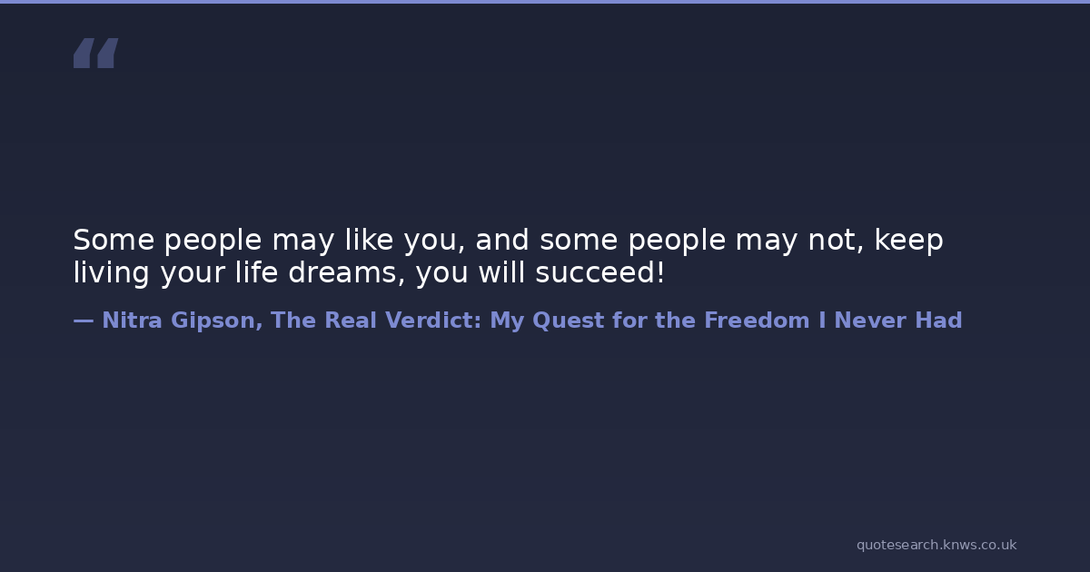 Some people may like you, and some people may not, keep living your life dreams, you will succeed! honesty inspirational-quotes life-and-living Download Image Share on X Share on Facebook Copy Link
