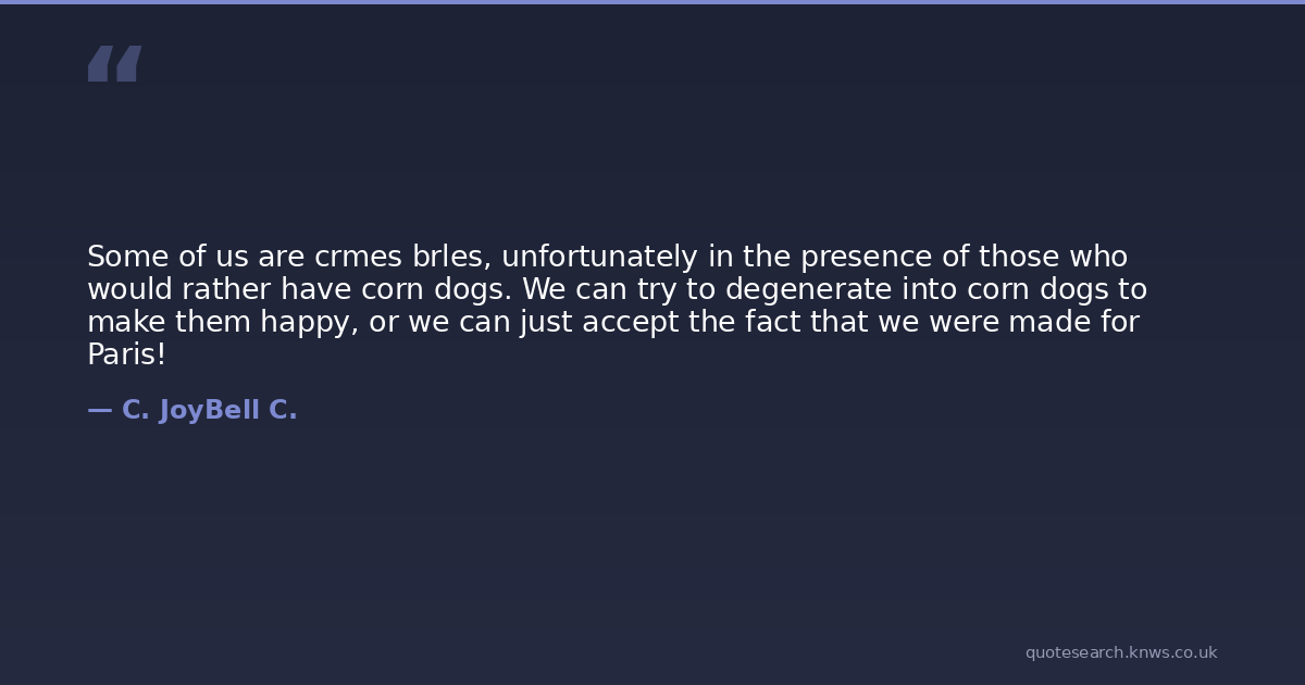 Some of us are crmes brles, unfortunately in the presence of those who would rather have corn dogs. We can try to degenerate into corn dogs to make them happy, or we can just accept the fact that we were made for Paris!