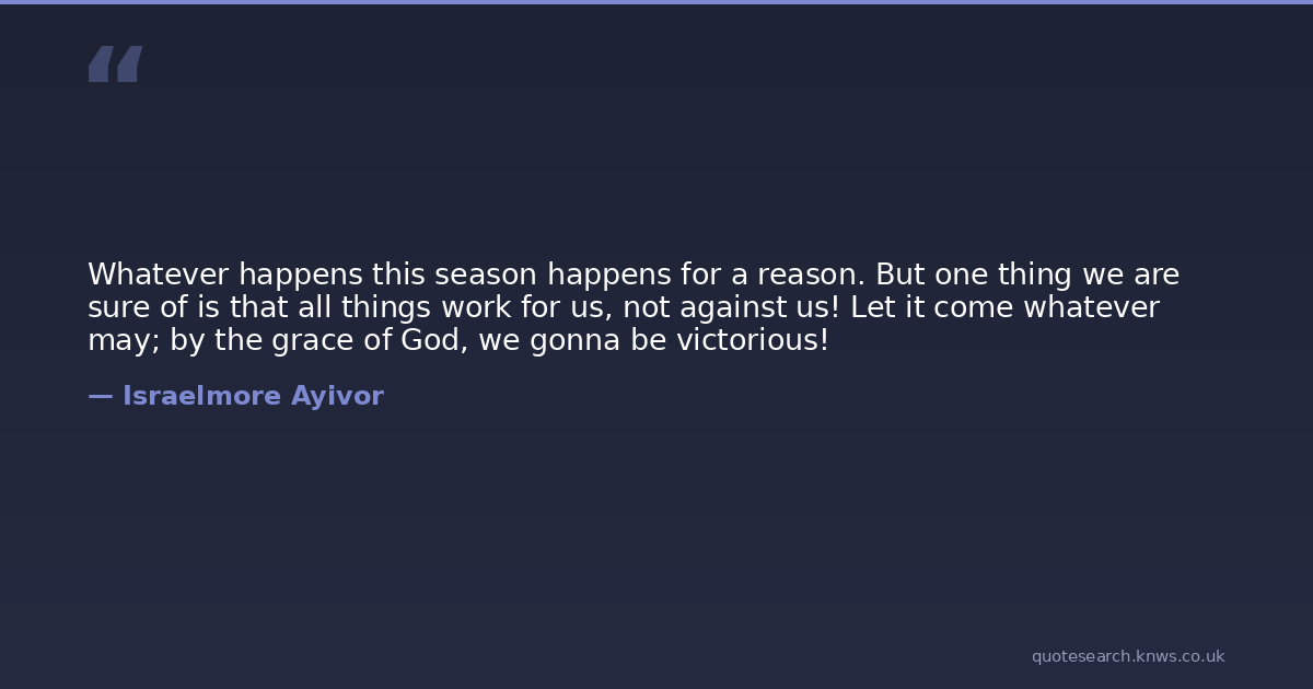 Whatever happens this season happens for a reason. But one thing we are sure of is that all things work for us, not against us! Let it come whatever may; by the grace of God, we gonna be victorious!
