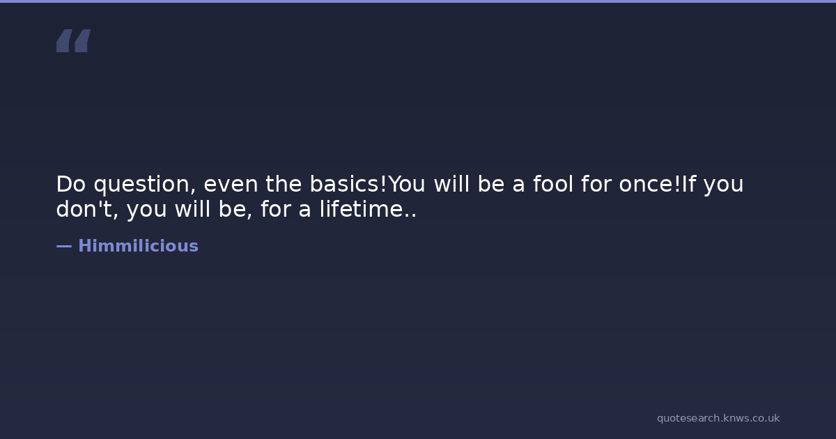 Do question, even the basics!You will be a fool for once!If you don't, you will be, for a lifetime..