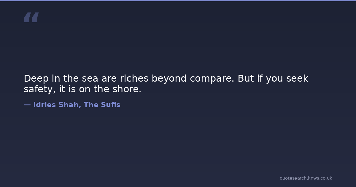 Deep in the sea are riches beyond compare. But if you seek safety, it is on the shore.