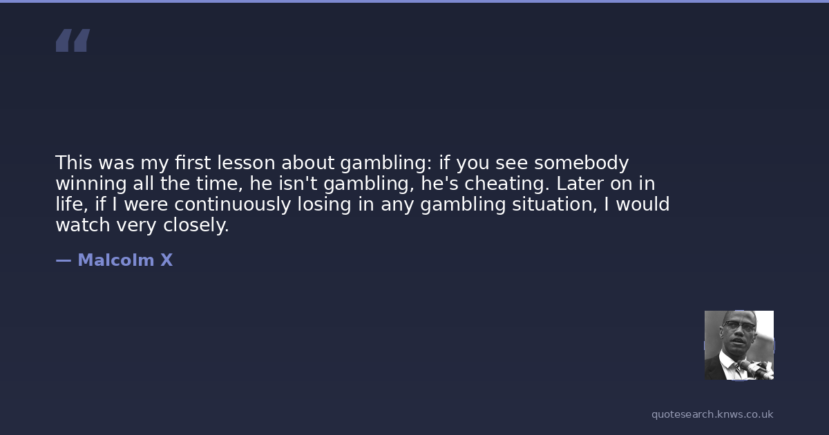 This was my first lesson about gambling: if you see somebody winning all the time, he isn't gambling, he's cheating. Later on in life, if I were continuously losing in any gambling situation, I would watch very closely.