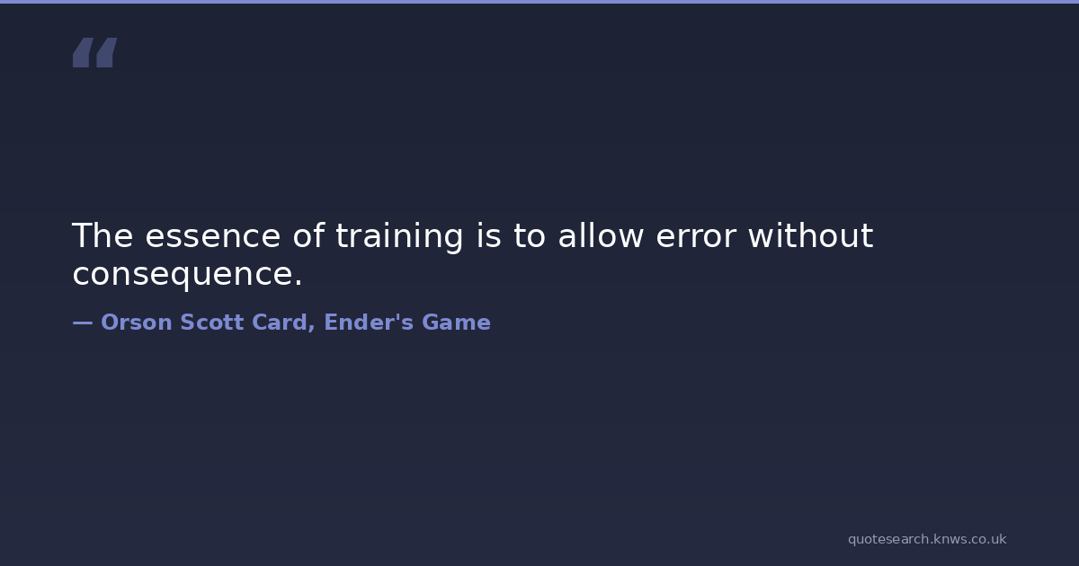 The essence of training is to allow error without consequence. learning practicing training Download Image Share on X Share on Facebook Copy Link