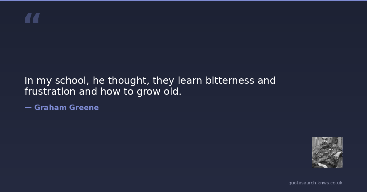 In my school, he thought, they learn bitterness and frustration and how to grow old.