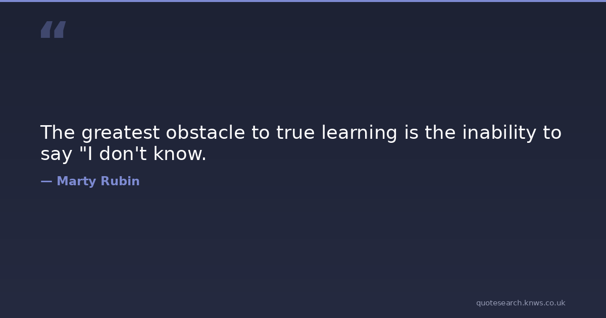 The greatest obstacle to true learning is the inability to say "I don't know. humility learning obstacles uncertainty Download Image Share on X Share on Facebook Copy Link