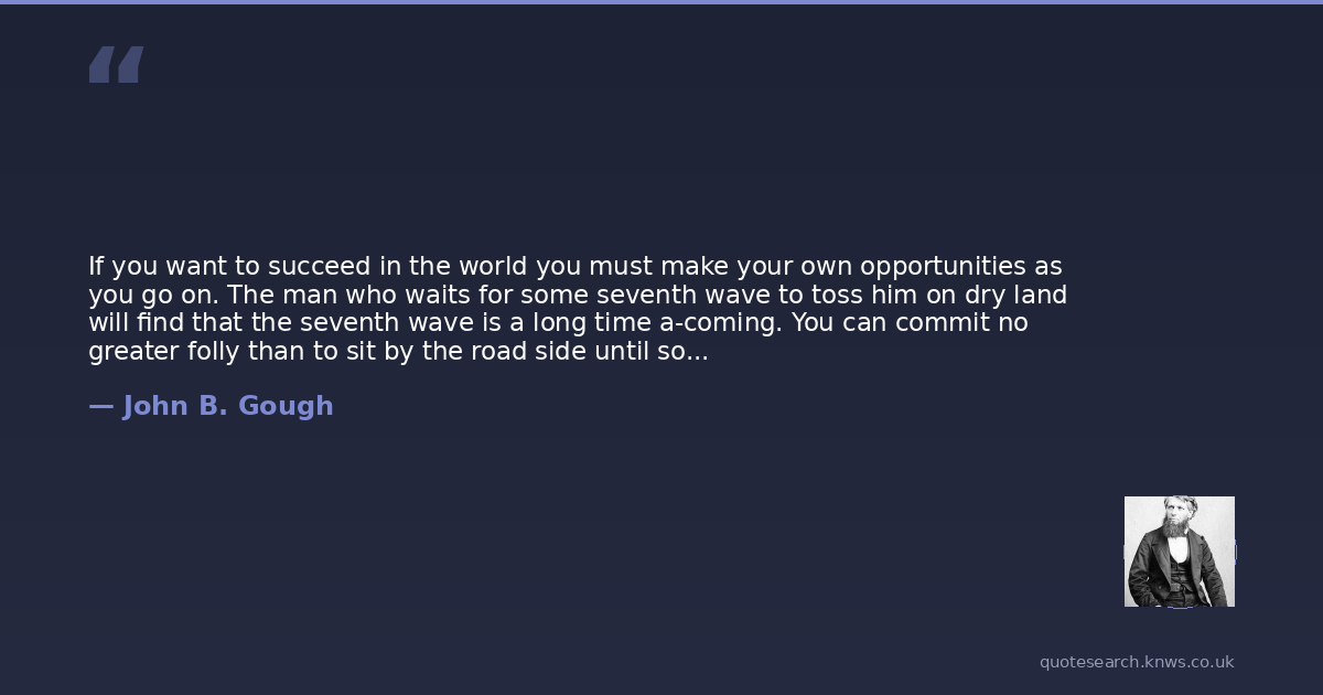If you want to succeed in the world you must make your own opportunities as you go on. The man who waits for some seventh wave to toss him on dry land will find that the seventh wave is a long time a-coming. You can commit no greater folly than to sit by the road side until someone comes along and invites you to ride with him to wealth or influence
