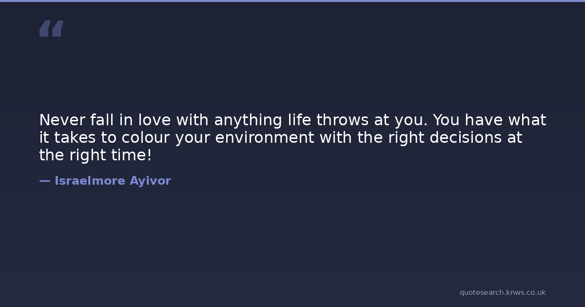 Never fall in love with anything life throws at you. You have what it takes to colour your environment with the right decisions at the right time!