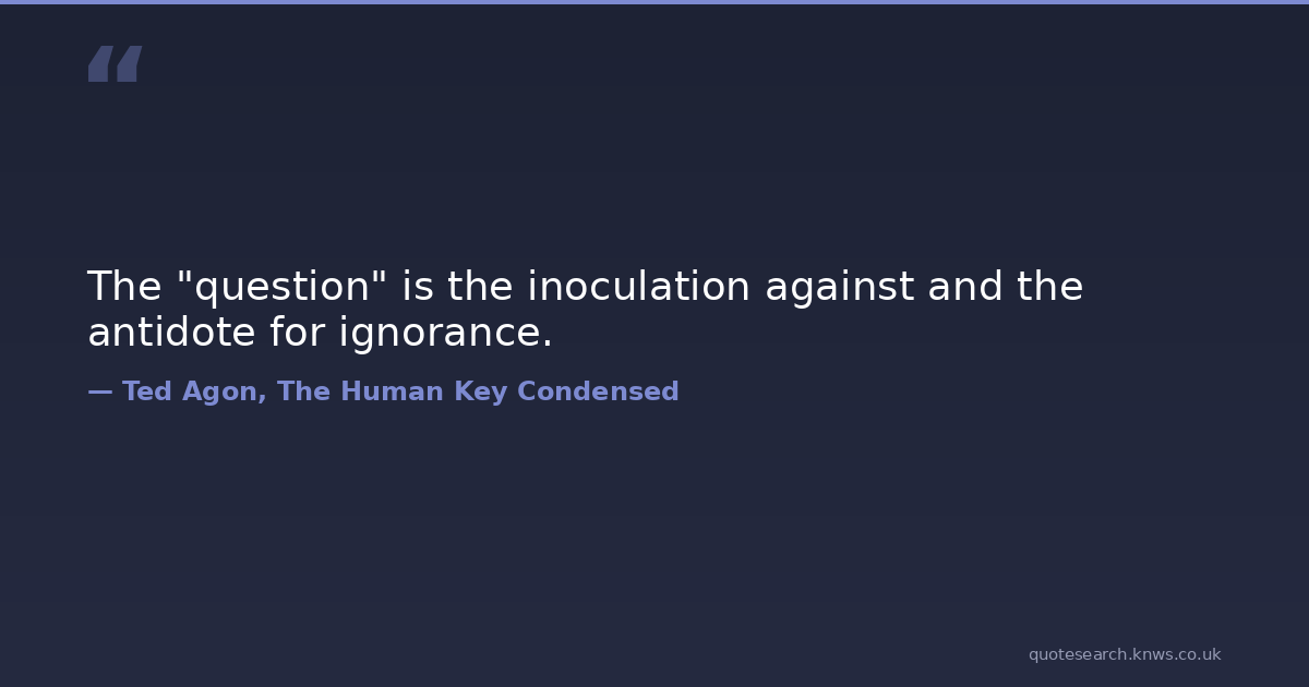 The "question" is the inoculation against and the antidote for ignorance.