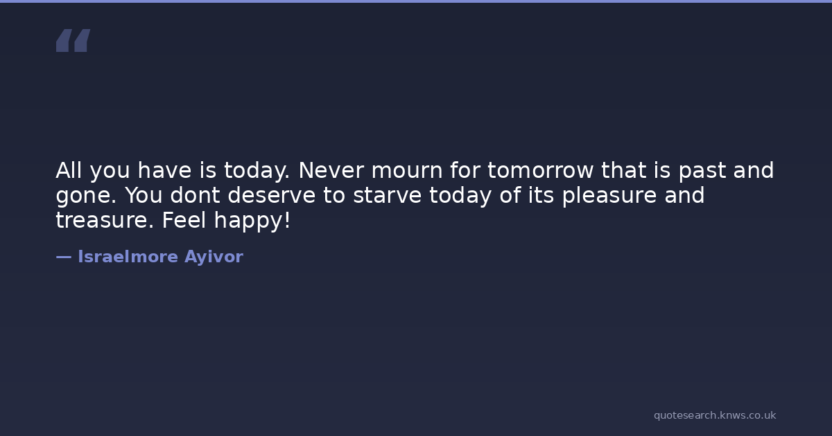 All you have is today. Never mourn for tomorrow that is past and gone. You dont deserve to starve today of its pleasure and treasure. Feel happy!