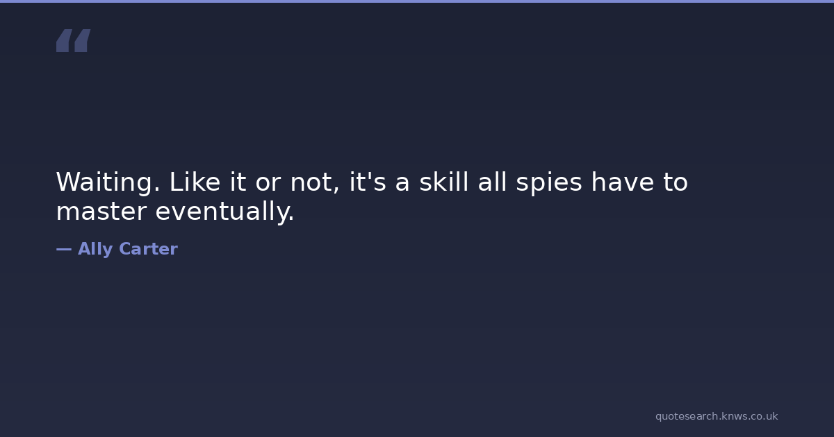 Waiting. Like it or not, it's a skill all spies have to master eventually.