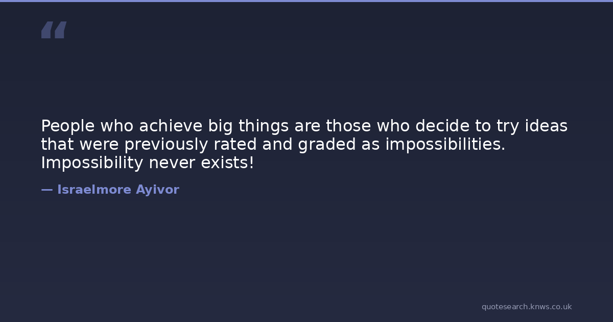 People who achieve big things are those who decide to try ideas that were previously rated and graded as impossibilities. Impossibility never exists!