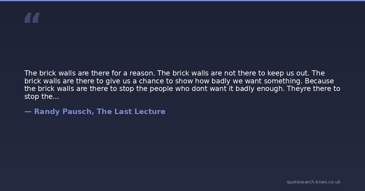 The brick walls are there for a reason. The brick walls are not there to keep us out. The brick walls are there to give us a chance to show how badly we want something. Because the brick walls are there to stop the people who dont want it badly enough. Theyre there to stop the other people.
