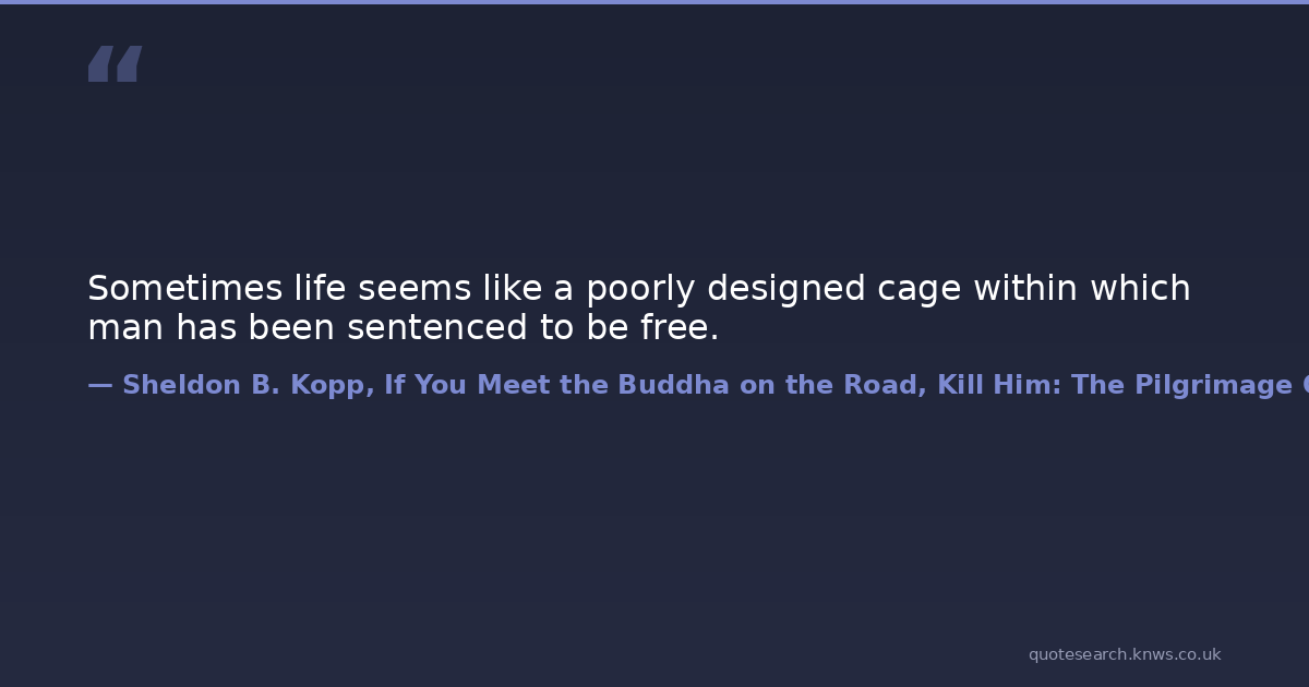 Sometimes life seems like a poorly designed cage within which man has been sentenced to be free.