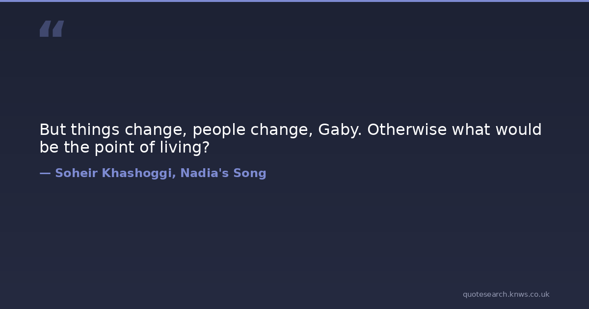 But things change, people change, Gaby. Otherwise what would be the point of living?