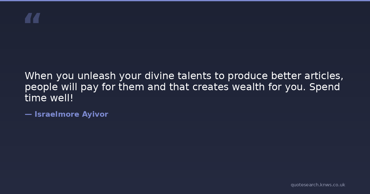 When you unleash your divine talents to produce better articles, people will pay for them and that creates wealth for you. Spend time well!