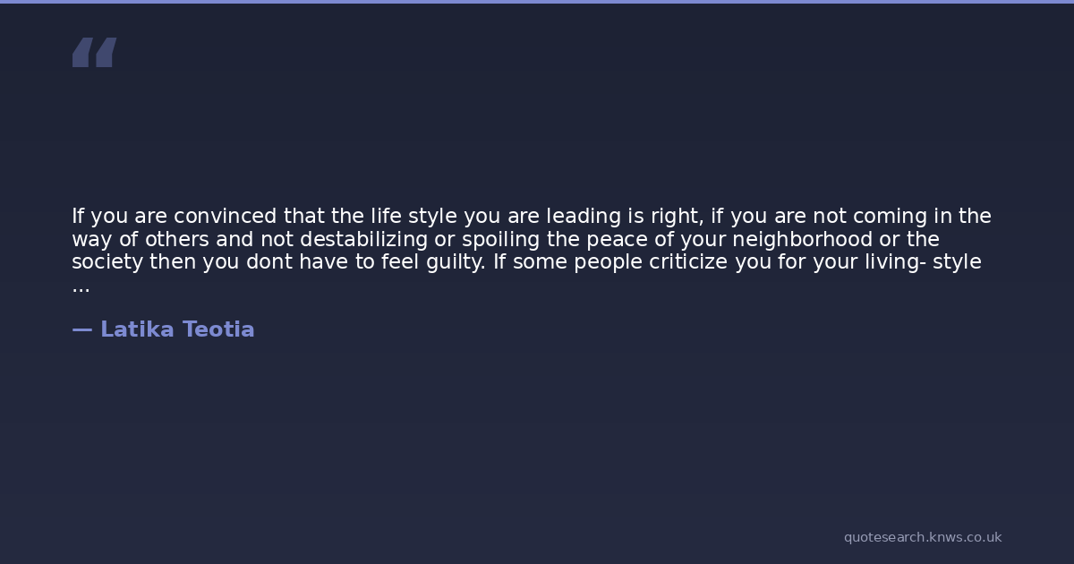 If you are convinced that the life style you are leading is right, if you are not coming in the way of others and not destabilizing or spoiling the peace of your neighborhood or the society then you dont have to feel guilty. If some people criticize you for your living- style , dont bother, remember you dont have to respond to everyone and everything that others say, dont feel guilty for ignoring them either.