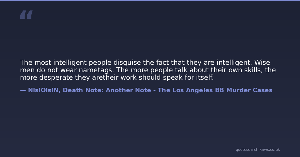 The most intelligent people disguise the fact that they are intelligent. Wise men do not wear nametags. The more people talk about their own skills, the more desperate they aretheir work should speak for itself.