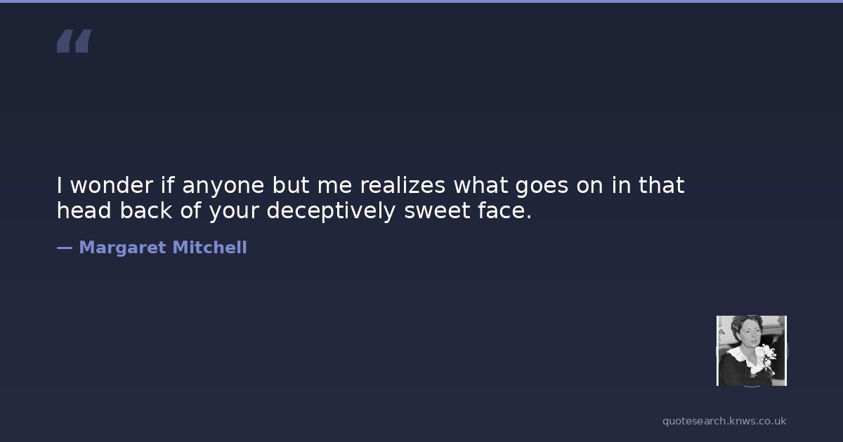 I wonder if anyone but me realizes what goes on in that head back of your deceptively sweet face.