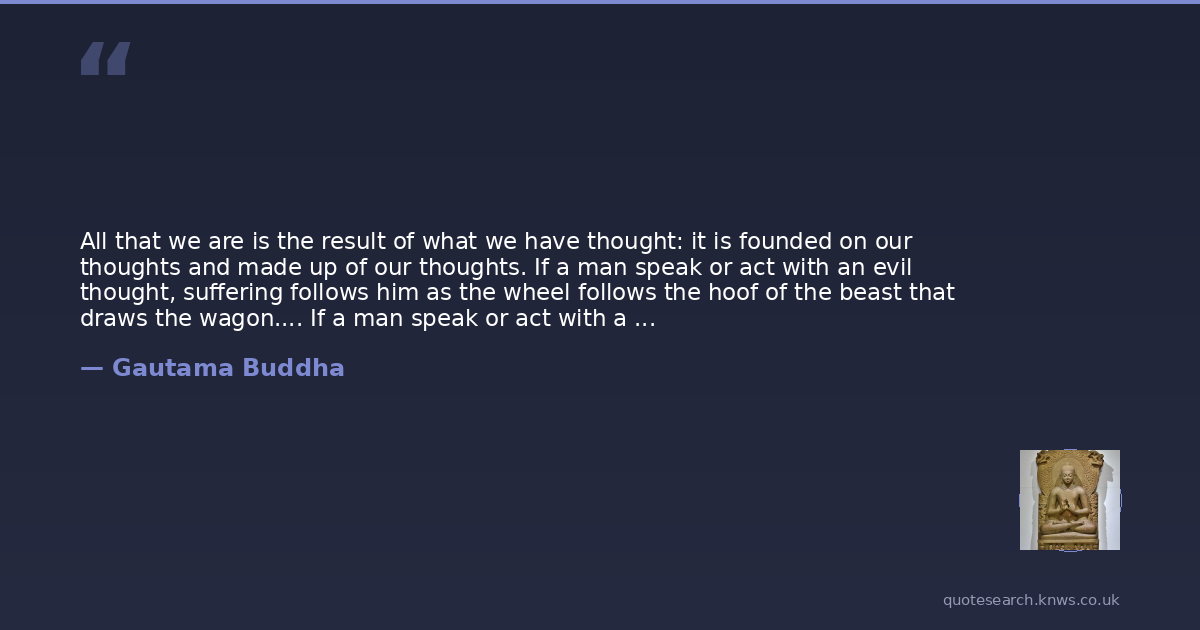 All that we are is the result of what we have thought: it is founded on our thoughts and made up of our thoughts. If a man speak or act with an evil thought, suffering follows him as the wheel follows the hoof of the beast that draws the wagon.... If a man speak or act with a good thought, happiness follows him like a shadow that never leaves him.