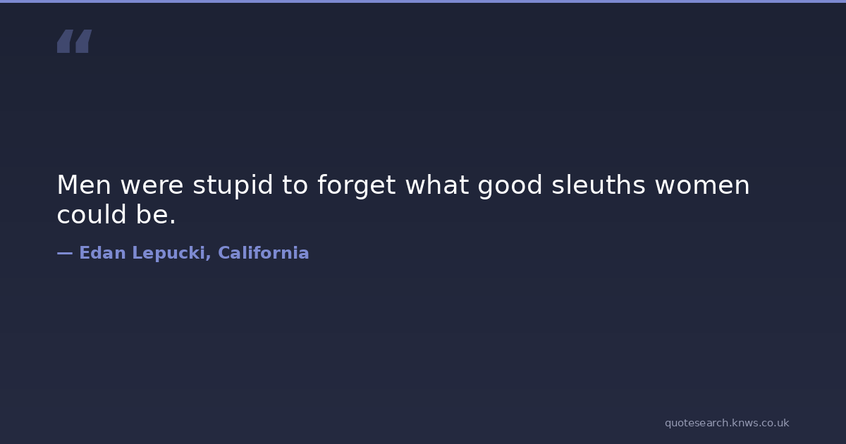 Men were stupid to forget what good sleuths women could be. gender-dynamics intelligence women-and-men Download Image Share on X Share on Facebook Copy Link