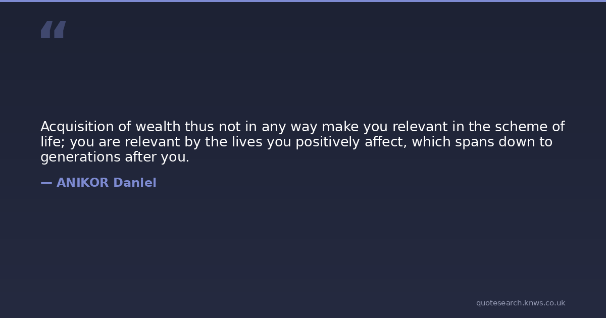 Acquisition of wealth thus not in any way make you relevant in the scheme of life; you are relevant by the lives you positively affect, which spans down to generations after you.