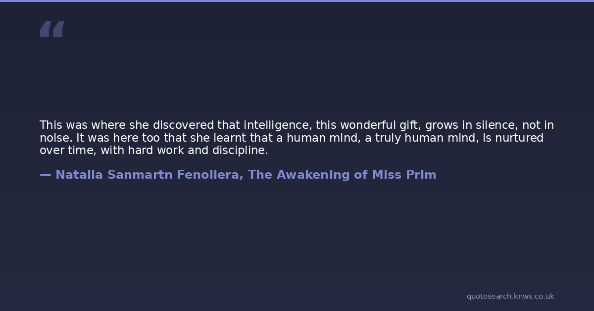 This was where she discovered that intelligence, this wonderful gift, grows in silence, not in noise. It was here too that she learnt that a human mind, a truly human mind, is nurtured over time, with hard work and discipline.