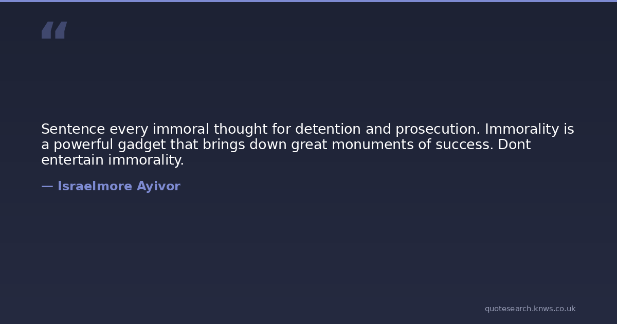 Sentence every immoral thought for detention and prosecution. Immorality is a powerful gadget that brings down great monuments of success. Dont entertain immorality.