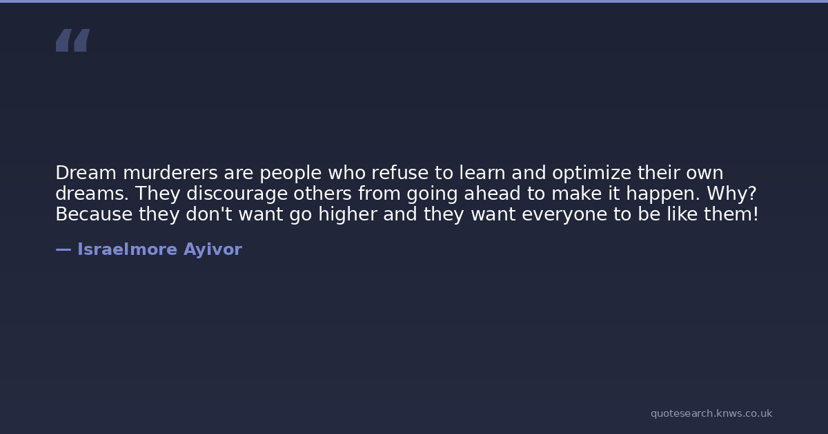 Dream murderers are people who refuse to learn and optimize their own dreams. They discourage others from going ahead to make it happen. Why? Because they don't want go higher and they want everyone to be like them!