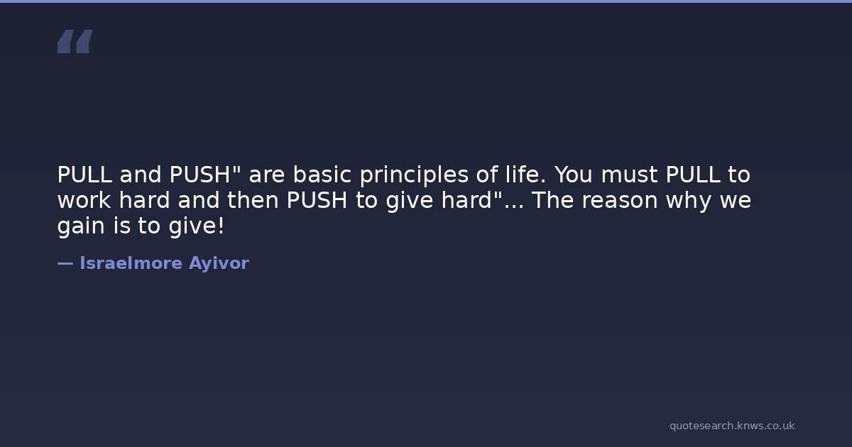 PULL and PUSH" are basic principles of life. You must PULL to work hard and then PUSH to give hard"... The reason why we gain is to give!